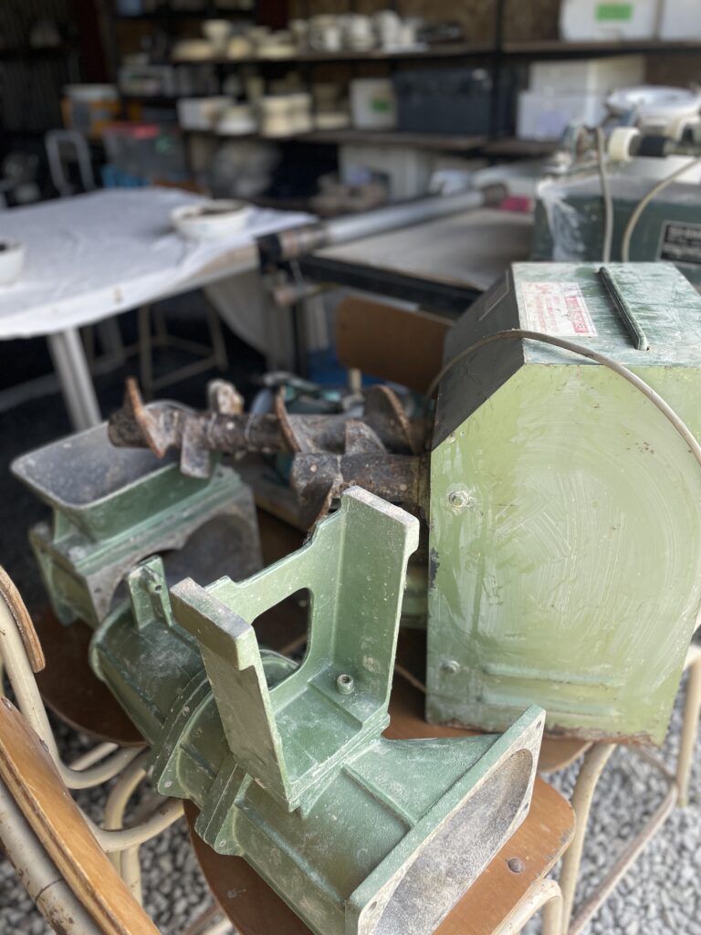 土練機とポットミルby imon 投稿日: 2025-10-21 灯油窯の指導でお世話になった一路窯(旭川)の稲垣先生が2025年5月に亡くなられました。奥様のご厚意により土練機とポットミルを譲り受けました。